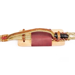Preferred by some top cowboys who want more of a firm base. Leather covered rubber pad, topped with a harder skirting leather. Attaches to rope with two buckled straps and padded leather hook and loop flap under riding hand. Check out the quality on this one!